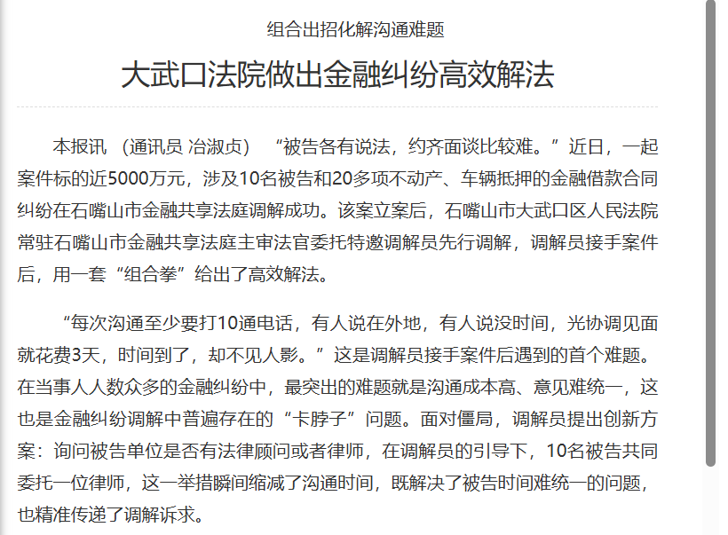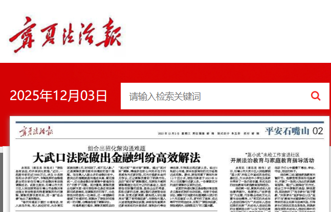 [宁夏法治报]组合出招化解沟通难题 大武口法院做出金融纠纷高效解法