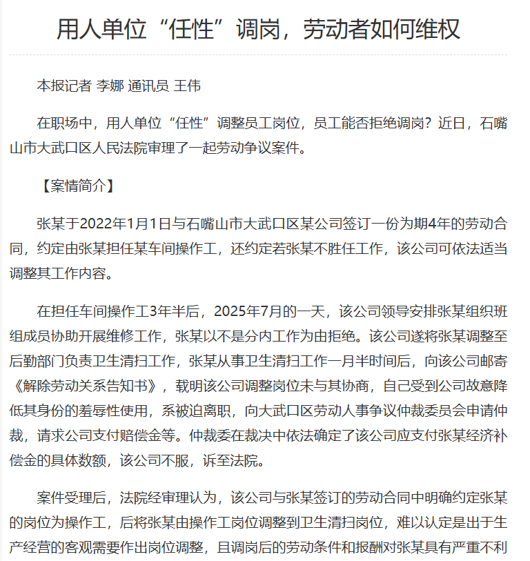 [宁夏法治报]用人单位“任性”调岗,劳动者如何维权