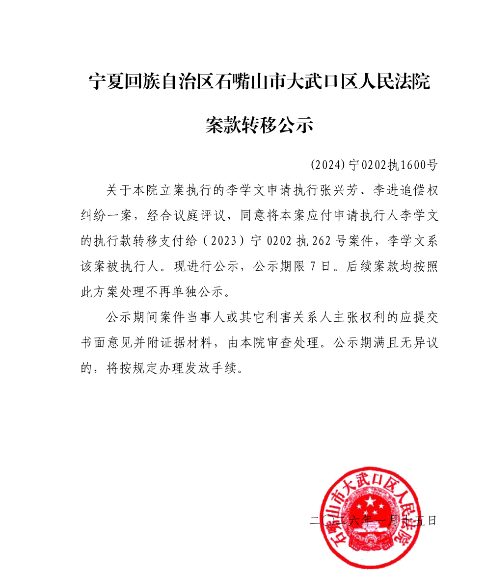 ① 凡本网注明“大武口区人民法院网”的作品,版权均属于大武口区人民法院网,未经本网书面授权不得转载、摘编和使用。已经本网书面授权使用本网作品的,应在授权范围内使用,并注明“来源:大武口区人民法院网”。违反上述声明者,本网将追究其相关法律责任。